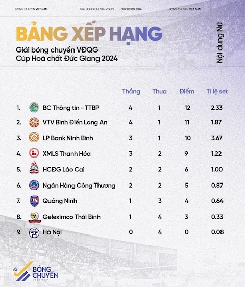 Ở trận đấu còn lại của bảng B, Praia Clube đã chơi đầy thuyết phục khi đánh bại NEC Red Rockets với tỷ số 3-0 (25-17, 25-23, 25-16). Chiến thắng này giúp đại diện Brazil vươn lên vị trí nhì bảng, tạo tiền đề thuận lợi cho các lượt trận tiếp theo. Kết quả của các lượt trận này đã làm rõ hơn cục diện bảng xếp hạng bóng chuyền nữ thế giới 2024, cho thấy những ứng cử viên sáng giá và những nỗ lực đáng ghi nhận của các đội bóng.
