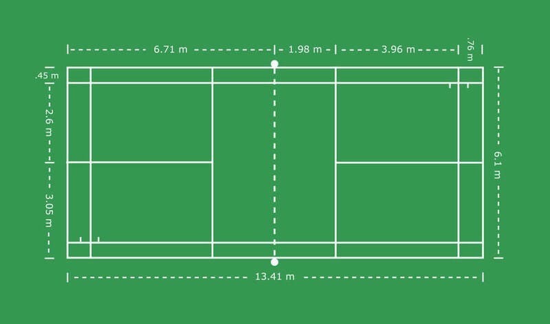- Đo chiều rộng sân: Từ các điểm đã đánh dấu trên đường biên ngang, đo ra mỗi bên 4.5 mét theo chiều rộng sân để xác định hai đường biên dọc. Tổng cộng chiều rộng sân sẽ là 9 mét. Đánh dấu các điểm này.