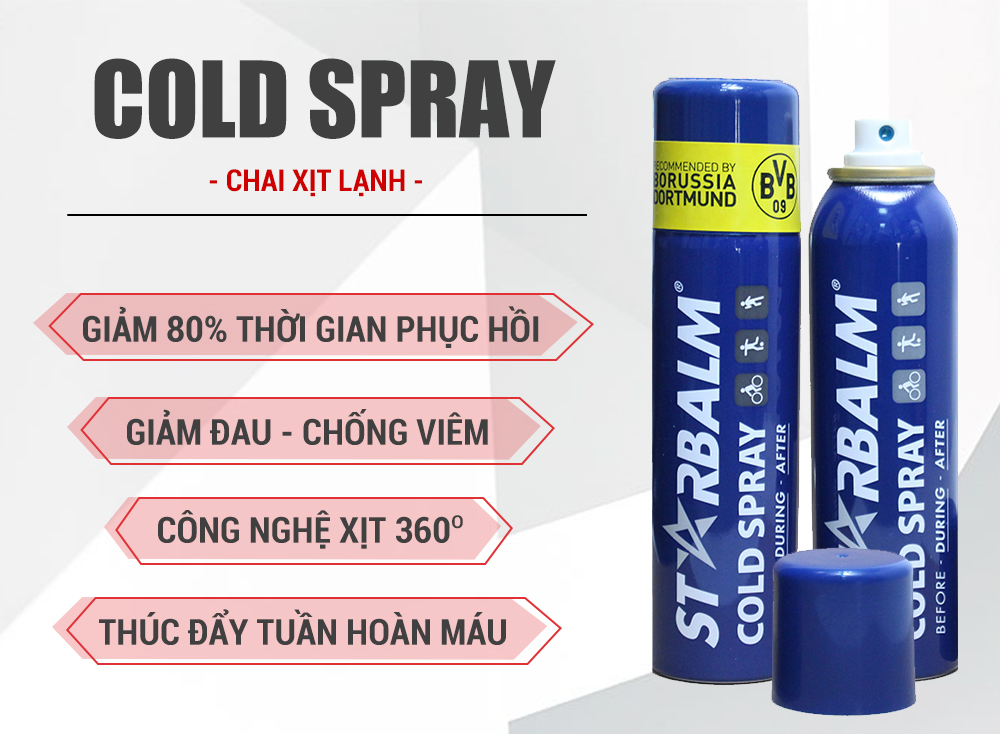 - Chấn thương cấp tính (va đập, bong gân, căng cơ mới): Ưu tiên các loại chai xịt lạnh (cold spray) có tác dụng làm tê liệt và giảm sưng nhanh chóng. Các sản phẩm như Starbalm Cold Spray hoặc Magicode Freeze Spray sẽ là lựa chọn tốt.