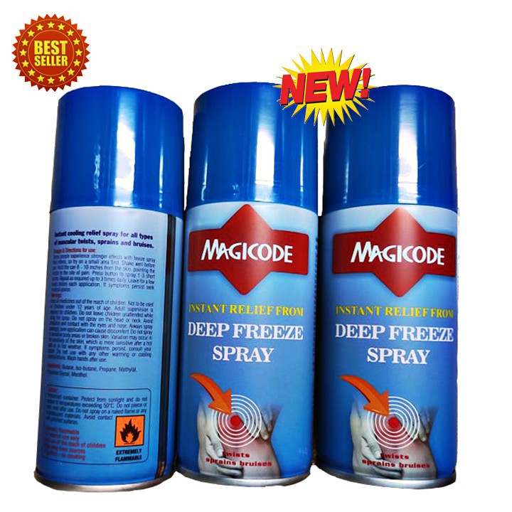 Magicode Freeze Spray 150ml là sản phẩm đến từ Nhật Bản, được đánh giá cao về khả năng giảm đau hiệu quả. Với các thành phần như Butane, Isobutane, Methylal, Propane, Propylene Glycol, Menthol, sản phẩm này mang lại tác dụng tối ưu trong việc điều trị các cơn đau nhức cơ bắp. Chai xịt giảm đau trong bóng đá Magicode Freeze Spray giúp giảm đau tạm thời tại chỗ, đau ngoại biên, cải thiện các cơn đau do bệnh xương khớp mãn tính và giảm vết bầm tụ máu hiệu quả. Sản phẩm này rất an toàn, không chứa các chất độc hại, đảm bảo sức khỏe người dùng. Khả năng làm lạnh tức thời giúp khoanh vùng vết thương, giảm sưng đau khi va chạm. Đây là lựa chọn lý tưởng để sử dụng trực tiếp ngay khi bị chấn thương, nhưng cần lưu ý không dùng cho vết thương hở.