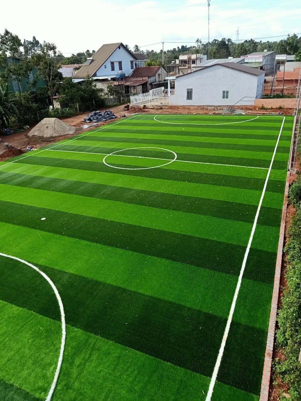 - Chi phí hạ tầng: San lấp mặt bằng, hệ thống thoát nước, hệ thống chiếu sáng, hàng rào, khung thành, lưới chắn bóng. Đây là phần chi phí lớn nhất và thường chiếm 50-70% tổng vốn đầu tư sân bóng.