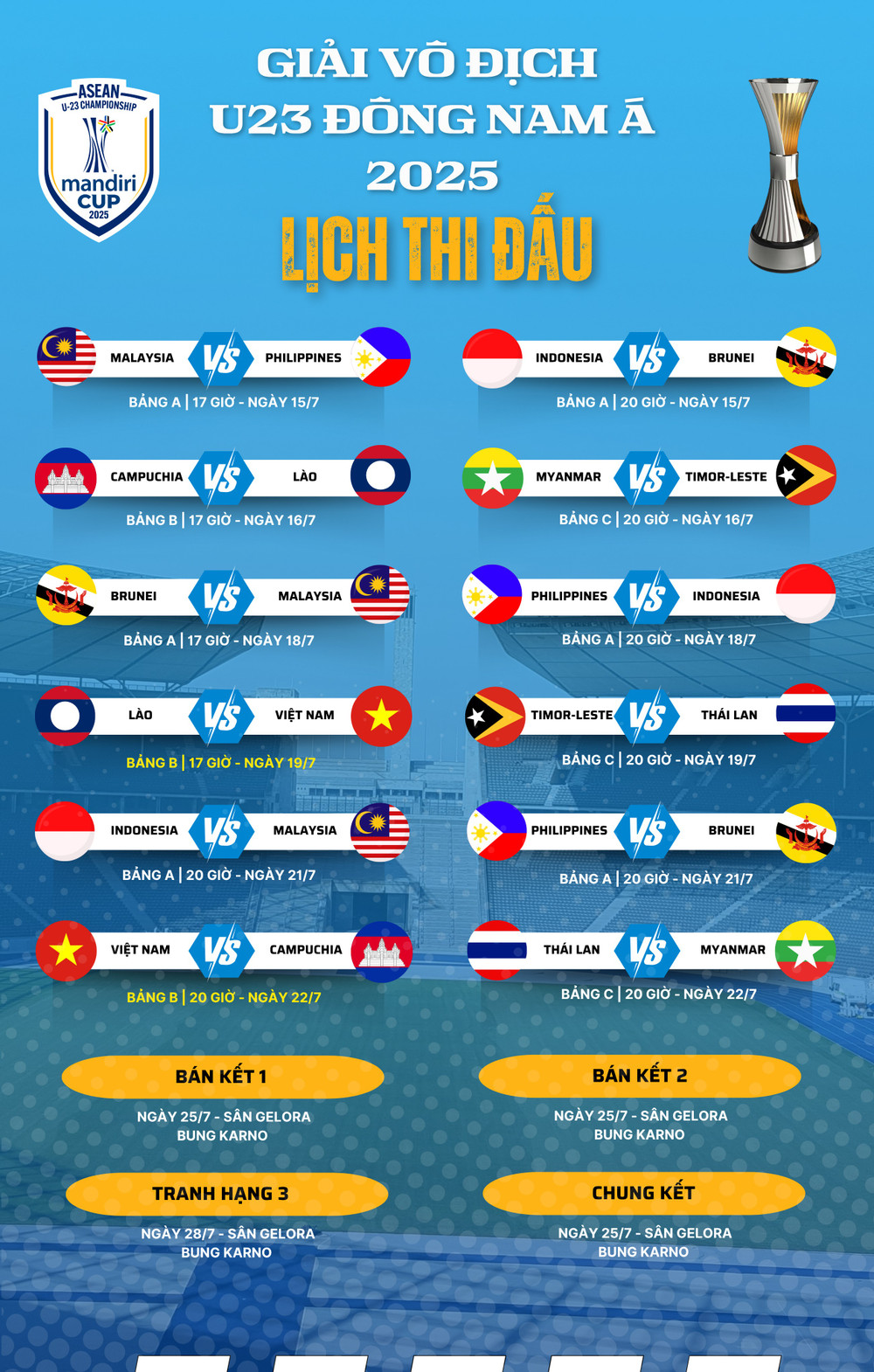 Bảng A thường bao gồm các đội mạnh và có nhiều kinh nghiệm như chủ nhà Philippines, Thái Lan, Indonesia, Việt Nam, Campuchia và Singapore. Trong khi đó, Bảng B có thể là sự góp mặt của Myanmar, Lào, Timor Leste, Malaysia và U23 Australia (đội khách mời). Sự phân chia bảng đấu này nhằm đảm bảo tính công bằng và tạo ra những cặp đấu cân sức ngay từ vòng loại. Thể thức này đòi hỏi các đội phải duy trì phong độ ổn định và có chiến lược rõ ràng qua từng trận đấu để giành vé đi tiếp.