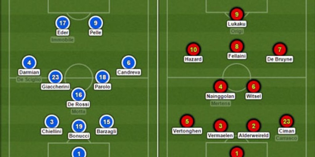 Hàng tiền vệ của Ý với Daniele De Rossi, Marco Parolo và Emanuele Giaccherini đã làm việc không biết mệt mỏi, kiểm soát khu vực giữa sân và tranh chấp quyết liệt. Dù thiếu vắng một nhạc trưởng như Andrea Pirlo, Conte đã khắc phục bằng cách khuyến khích các tiền vệ trung tâm và thậm chí cả các trung vệ chủ động phất bóng dài lên tuyến trên cho Eder và Pellè, những tiền đạo có tốc độ và khả năng tỳ đè tốt.