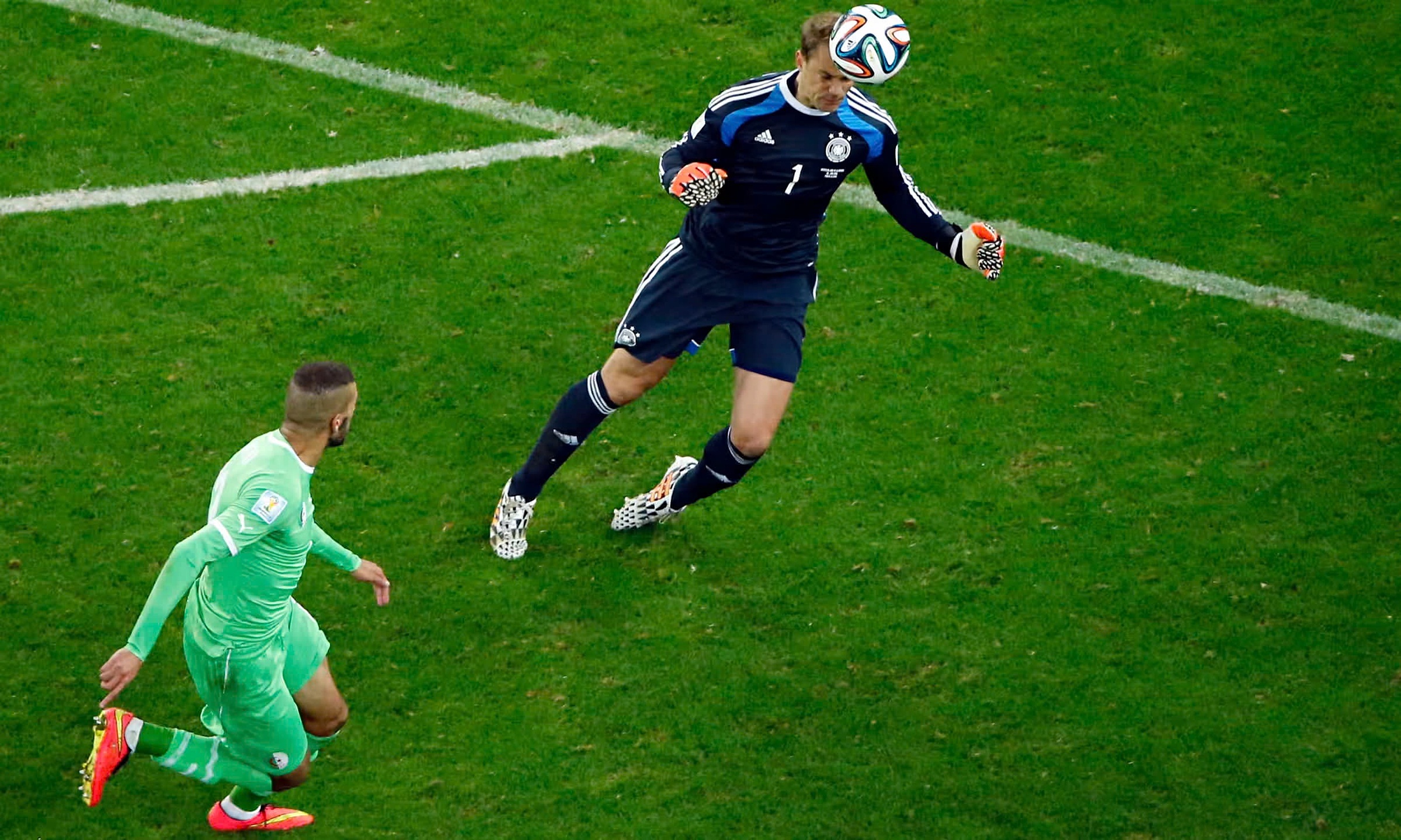 Trận đấu gặp Algeria ở vòng 1/8 World Cup 2014 là minh chứng hùng hồn nhất cho tầm quan trọng của một thủ môn quét. Algeria, biết rõ Đức sẽ sử dụng hàng thủ dâng cao tới giữa sân, vì thế họ thường xuyên chuyền dài vượt tuyến để các tiền đạo bứt tốc với hy vọng đối mặt với Neuer. Nhưng năm lần bảy lượt, thủ môn khi đó 28 tuổi đều lao vào bóng nhanh hơn cả tiền đạo, để chấm dứt cơ hội của đối phương.