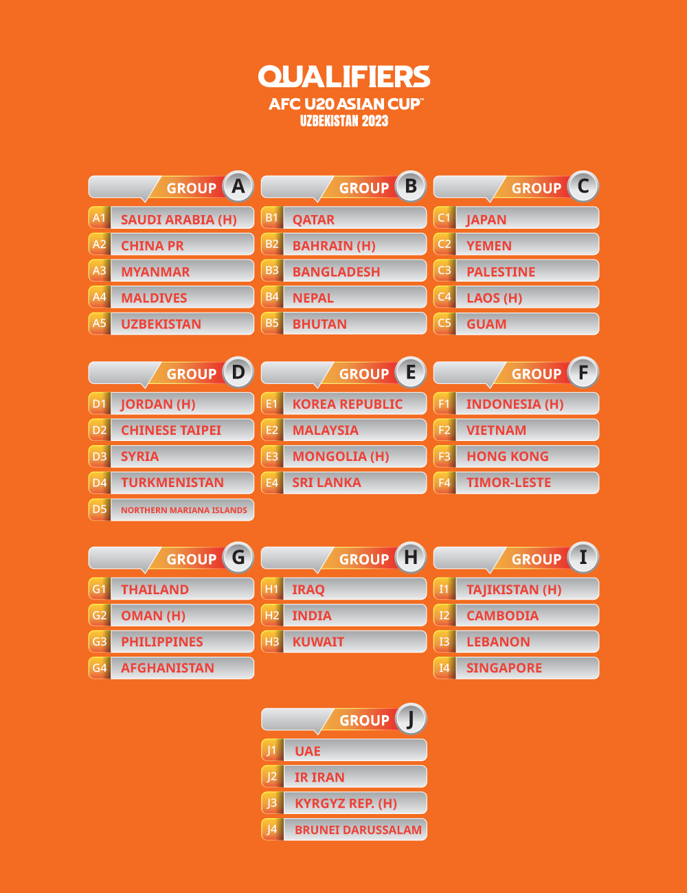 Cụ thể, bên cạnh bảng F được tổ chức tại Indonesia với sự góp mặt của U20 Việt Nam, các bảng đấu còn lại được diễn ra tại nhiều quốc gia khác trên khắp châu lục. Danh sách các quốc gia đăng cai bao gồm: Lào, Bahrain, Iraq, Jordan, Kyrgyzstan, Mông Cổ, Oman, Saudi Arabia và Tajikistan. Mỗi quốc gia chủ nhà đều nỗ lực hết mình để cung cấp điều kiện tốt nhất cho các đội tuyển, từ sân bãi thi đấu đạt chuẩn quốc tế đến các dịch vụ ăn ở, di chuyển. Sự phân bổ rộng rãi này cũng giúp lan tỏa không khí bóng đá đến nhiều khu vực, tạo điều kiện cho người hâm mộ địa phương được chứng kiến các trận đấu đỉnh cao của bóng đá trẻ.