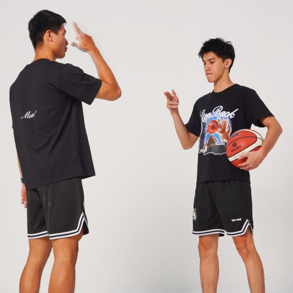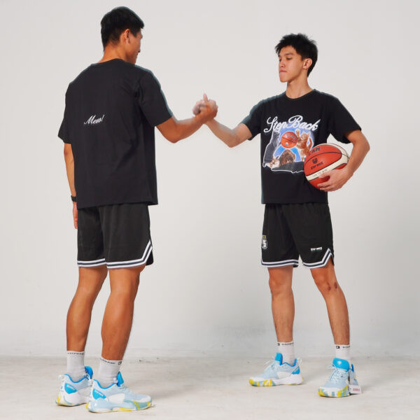 Stepback Meow nổi bật với họa tiết độc quyền hình chú mèo ngồi trên quả bóng rổ. Sự kết hợp tưởng chừng như đối lập giữa hình ảnh chú mèo mềm mại, dễ thương và quả bóng rổ mạnh mẽ đã tạo nên một thiết kế vô cùng độc đáo và thu hút. Họa tiết này không chỉ thể hiện sự sáng tạo của local brand Việt mà còn mang đến một góc nhìn mới mẻ về bóng rổ: không phải lúc nào cũng gắt gao, mà còn có thể mềm mại và đầy tính nghệ thuật. Công nghệ in lụa cao cấp được áp dụng đảm bảo hình ảnh sắc nét, bền màu và không bong tróc, giữ cho chiếc áo luôn đẹp như mới sau nhiều lần sử dụng. Đây là điểm cộng lớn cho những ai yêu thích các thiết kế có tính thẩm mỹ và độ bền cao.