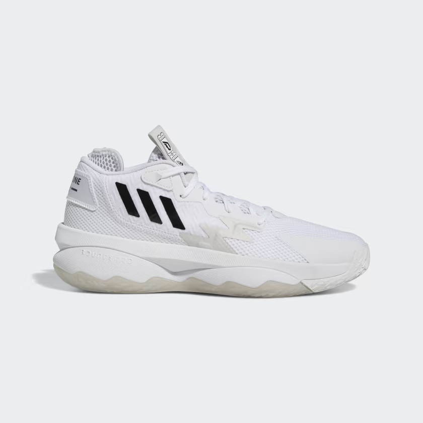 Hình ảnh một đôi giày bóng rổ Adidas Dame, thể hiện phong cách mạnh mẽ và cá tính của Damian Lillard, cùng với công nghệ đệm tối ưu.