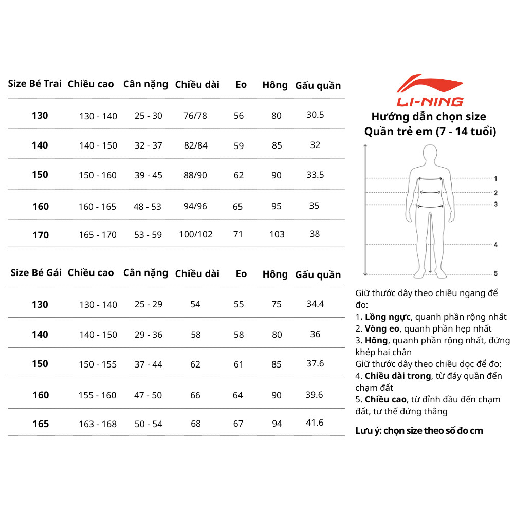 Bảng size quần áo golf nam Lecoq, có thể tham khảo cho quần thể thao khác