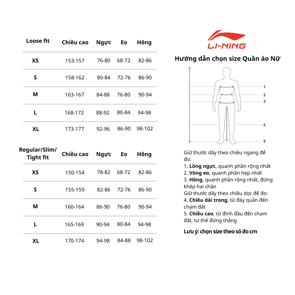 Bảng size áo thể thao nữ 361 độ, hỗ trợ cho việc chọn trang phục bóng rổ