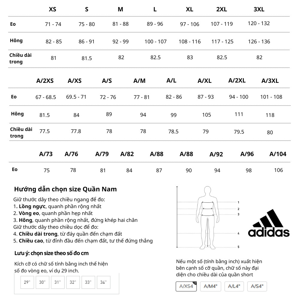 Bảng Size Quần Nam (Tham khảo)