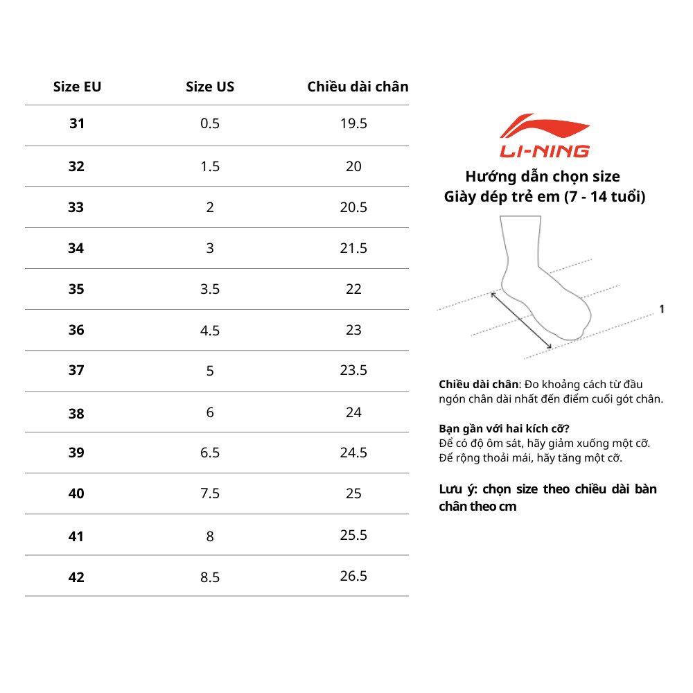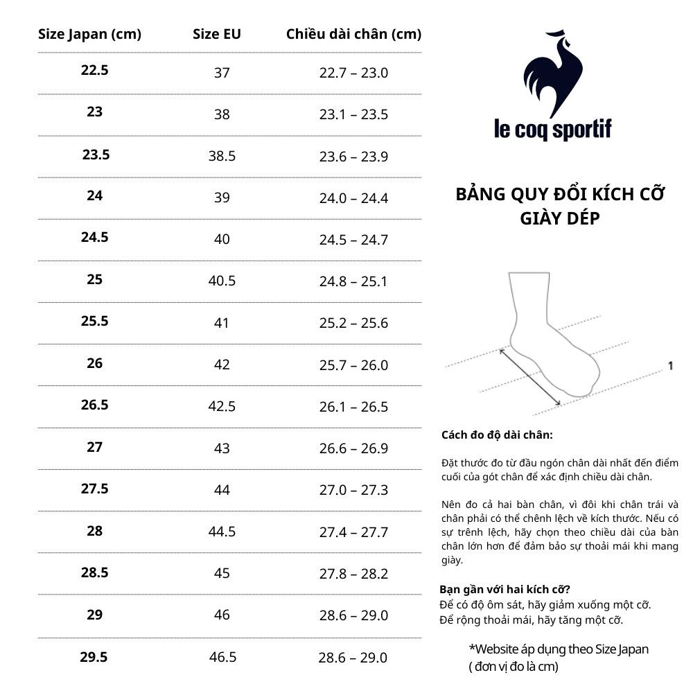Lưu ý: Bảng trên chỉ mang tính chất tham khảo. Luôn kiểm tra bảng size cụ thể của từng sản phẩm Jordan nếu có.