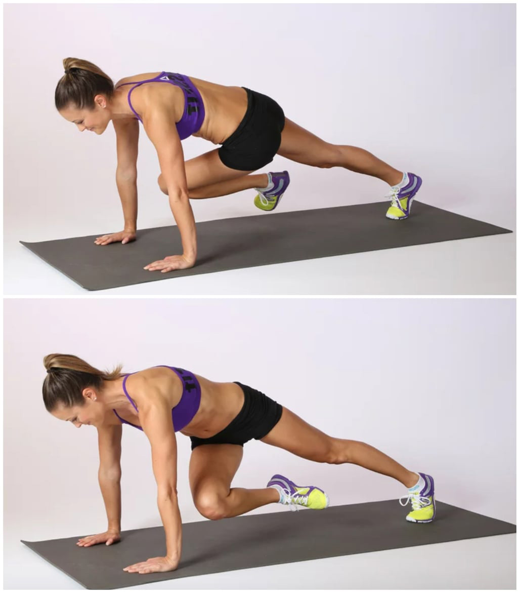 - Lặp lại: Thực hiện liên tục và nhịp nhàng, mô phỏng động tác leo núi. Giữ cho hông ổn định, không để hông bị lắc lư quá nhiều.