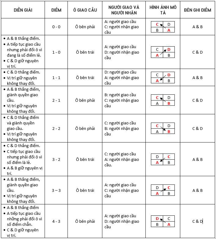 Lưu ý: Nếu trong quá trình thi đấu, cầu dính vướng vào lưới và không rơi xuống bất kỳ phần sân thi đấu nào (gọi là “let” hoặc “play let”), tình huống cầu đó sẽ không được tính. Hai đội chơi sẽ thực hiện lại tình huống cầu mới mà không có sự thay đổi về điểm số. Đây là một quy định quan trọng để đảm bảo tính công bằng của mỗi pha bóng.