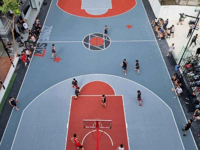 Sân bóng Gamuda được thiết kế theo kích thước tiêu chuẩn 3×3, một hình thức bóng rổ ngày càng phổ biến. Mặt sân được sơn bao phủ bề mặt, giúp chống trơn trượt và nâng cao hiệu suất luyện tập cũng như thi đấu. Mặc dù diện tích sân có phần hạn chế so với các sân 5×5, nhưng sân Gamuda vẫn đảm bảo đầy đủ hệ thống đèn chiếu sáng hiện đại, cột rổ và bảng rổ chất lượng cao, cùng với vạch kẻ sân rõ ràng, giúp người chơi dễ dàng thực hiện các kỹ thuật. Khi tới đây thi đấu và luyện tập, người chơi có thể sử dụng đa dạng các tiện ích như bãi đỗ xe an toàn, phòng thay đồ tiện nghi, nhà vệ sinh sạch sẽ và khu vực nghỉ ngơi thoải mái. Với những ưu điểm này, sân bóng rổ Gamuda là một lựa chọn tuyệt vời trong danh sách các sân bóng rổ Hà Nội dành cho những trận đấu tốc độ và đầy kịch tính.